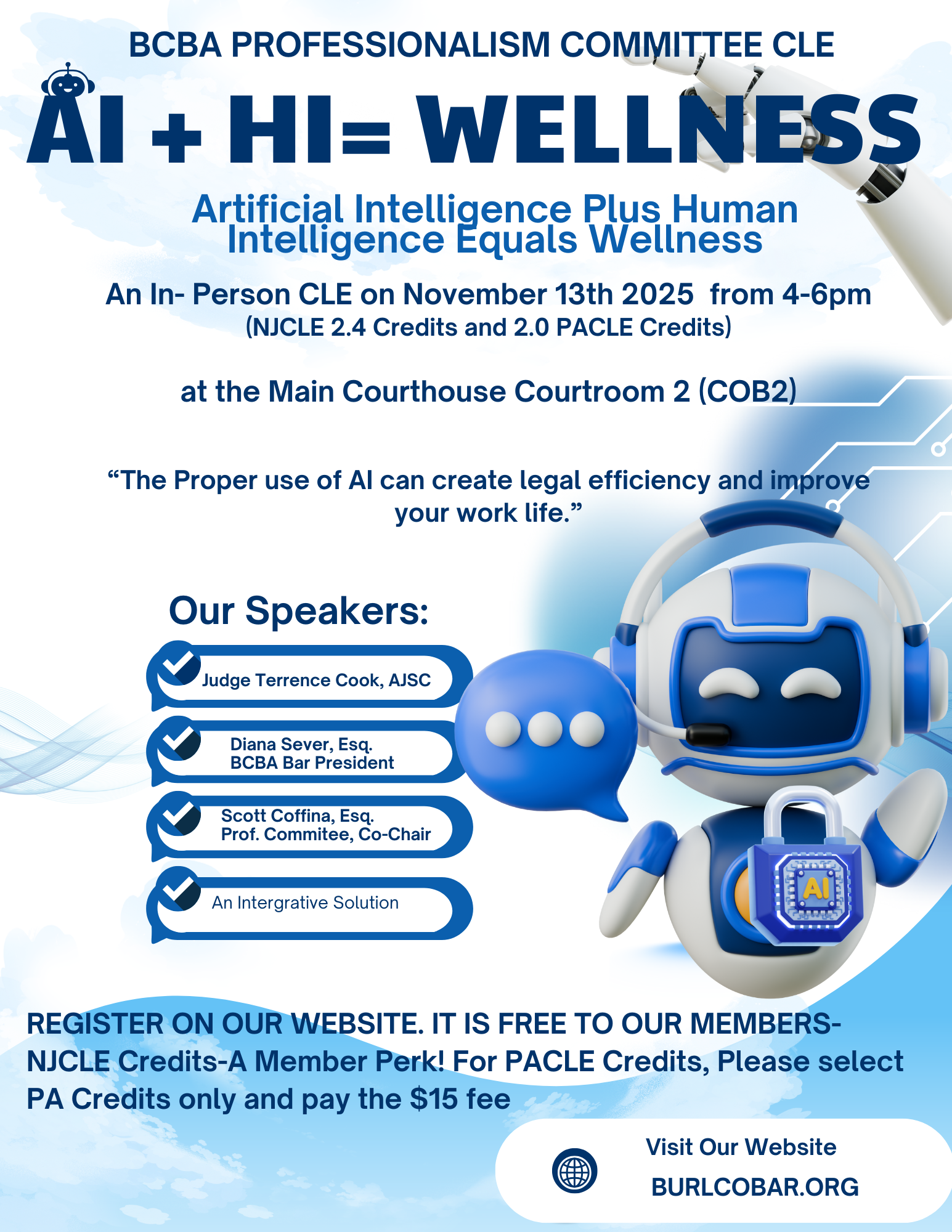 Professionalism IN-PERSON CLE: AI+HI=Wellness